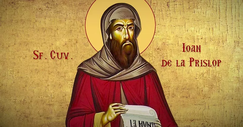 Jugul nevoinţelor pe umeri luându-l, lui Hristos ai urmat, Prea Cuvioase Părinte Ioane. În peşteră nevoindu-te, cu răceala pietrei te-ai împrietenit şi podoaba pustniciei o ai dobândit. Pentru aceasta cu cântări te lăudăm, zicând: Bucură-te, Sfinte Prea Cuvioase Părinte Ioane, lauda Prislopului!