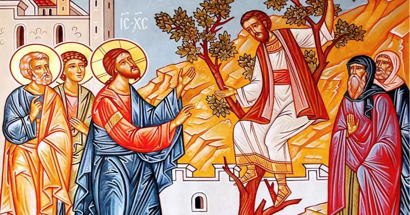 Mântuitorul Hristos le vestise ucenicilor Săi că se vor sui la Ierusalim, iar El va fi dat în mâinile celor fără de lege: „Iată ne suim la Ierusalim şi se vor împlini toate cele scrise prin proroci despre Fiul Omului”. Ucenicii n-au înțeles atunci aceste cuvinte, fiindcă ochii lor erau ațintiți asupra mulțimilor care Îl înconjurau și Îl aclamau pentru învățătura Lui și pentru minunile pe care le săvârșea. Se contura din ce în ce mai mult ideea că El este Cel care va izbăvi pe Israel și va aduce pace în popor. Nimeni nu rămânea indiferent la prezența Fiului Omului, nici chiar cei mai puternici și bogați oameni ai momentului. Unul dintre acești oameni era Zaheu, mai-marele vameșilor din Ierihon.