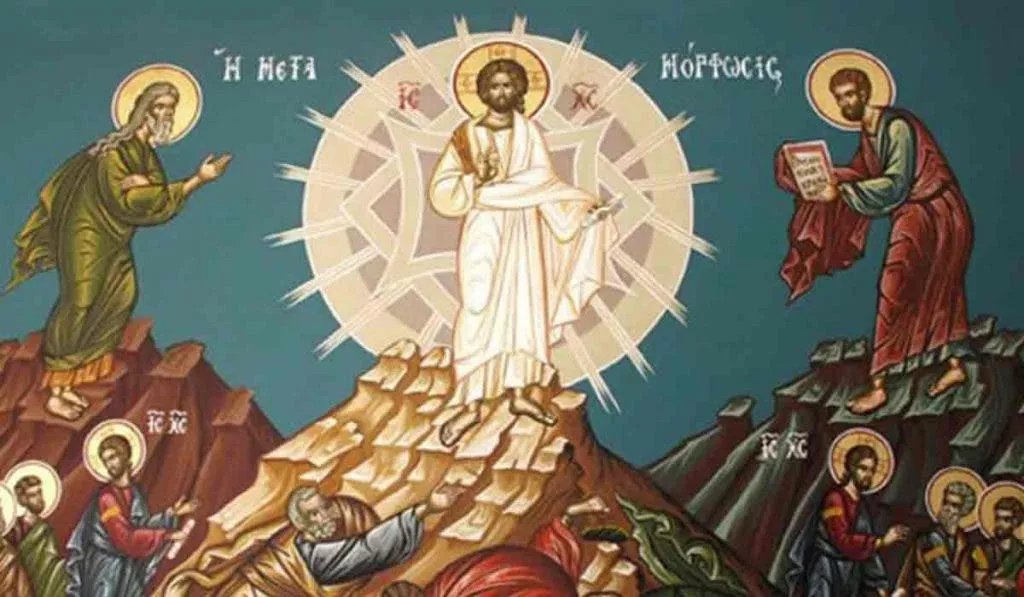 „Si dupa sase zile, Iisus a luat cu Sine pe Petru si pe Iacov si pe Ioan, fratele lui, si i-a dus intr-un munte inalt, de o parte. Si S-a schimbat la fata, inaintea lor, si a stralucit fata Lui ca soarele, iar vesmintele Lui s-au facut albe ca lumina. Si iata, Moise si Ilie s-au aratat lor, vorbind cu El. Si, raspunzand, Petru a zis lui Iisus: Doamne, bine este sa fim noi aici; daca voiesti, voi face aici trei colibe: Tie una, si lui Moise una, si lui Ilie una. Vorbind el inca, iata un nor luminos i-a umbrit pe ei, si iata glas din nor zicand: “Acesta este Fiul Meu Cel iubit, in Care am binevoit; pe Acesta ascultati-L”. Si, auzind, ucenicii au cazut cu fata la pamant si s-au spaimantat foarte. Si Iisus S-a apropiat de ei, si, atingandu-i, le-a zis: Sculati-va si nu va temeti. Si, ridicandu-si ochii, nu au vazut pe nimeni, decat numai pe Iisus singur. Si pe cand se coborau din munte, Iisus le-a poruncit, zicand: Nimanui sa nu spuneti ceea ce ati vazut, pana cand Fiul Omului Se va scula din morti.”