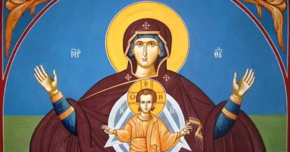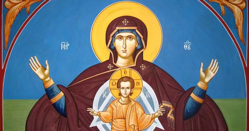Auzi-ne pe noi, cei ce ne rugăm ție; ocrotește-ne pe noi cu atotputernicul tău Acoperământ și cere de la Dumnezeu Fiul tău să dea păstoriților noștri sfințenie, ca să privegheze și să ocârmuiască sufletele noastre; ocârmuitorilor de orașe, înțelepciune și putere; judecătorilor, dreptate și necăutare la față; învățătorilor, minte și smerită înțelepciune; asupriților, răbdare; asupritorilor, frică de Dumnezeu; celor mâhniți, răbdare și bucurie duhovnicească; neînfrânaților, înfrânare; și nouă, tuturor, duhul înțelepciunii și al cucerniciei, duhul milostivirii și al blândeții, duhul curăției și al dreptății. Așa, Doamnă preasfântă, milostivește-te asupra noastră și asupra neputinciosului tău popor.