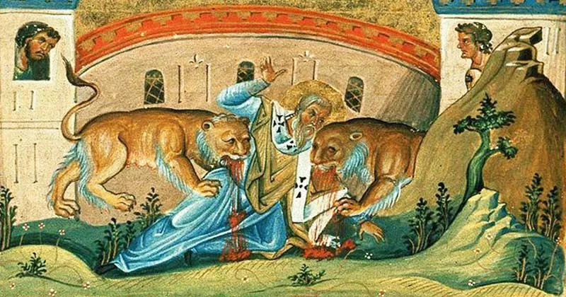 Bucură-te, că încă sfânta mărturisire pe buze o aveai când leii veneau spre tine urlând;