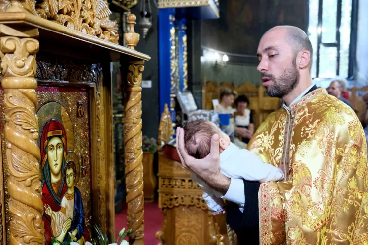 Potrivit Molitfelnicului, copilul este adus la biserică de către mama sa, fiind de faţă şi naşul. Ei stau în pronaosul bisericii unde sunt întâmpinaţi de preot înveşmântat în epitrahil şi care, după ce dă binecuvântarea, rosteşte rugăciunile începătoare şi troparul Întâmpinării Domnului. Apoi plecându-şi mama capul împreună cu pruncul, preotul face semnul sfintei cruci peste ei şi, punând epitrahilul pe capul mamei, zice rugăciunile rânduite. Cele două rugăciuni pentru mamă cer de la Dumnezeu ca să o învrednicească de curăţire spre a veni în biserică pentru a se împărtăşi cu Sfintele Taine. A doua parte a rânduielii de la 40 de zile se referă la prunc. Preotul punând mâna pe capul lui rosteşte trei rugăciuni. După rostirea rugăciunilor, preotul, luând pe prunc, îl închină, îmbisericindu-l.