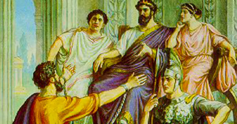 Atunci ighemonul Festus, sfatuindu-se cu sfetnicii săi, a zis către Pavel: „Pe Cezarul l-ai pomenit, la Cezar te vei duce!” Iar după câteva zile, împăratul Agripa venind în Cezareea ca să cerceteze pe Festus şi aflând despre Pavel, a voit ca să-l vadă pe el. Iar când Pavel a fost pus înaintea împăratului Agripa şi a ighemonului Festus, el le-a vorbit despre Domnul Hristos şi pentru adeverirea Sa. Atunci împăratul Agripa a zis către dânsul: „Puţin de nu m-ai convins şi pe mine, ca să fiu creştin!” Iar Pavel a zis:Eu m-aş fi rugat lui Dumnezeu, ca şi întru puţin şi întru mult, nu numai tu, ci toţi cei ce mă aud pe mine astăzi, să fie într-acest chip, precum sunt eu, afară de legăturile acestea!